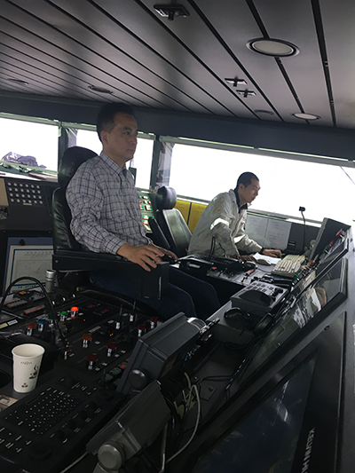 早晨7点左右,彭于平船长和所有的船员、海乘们一起,乘着公司接驳车前往“海峡号”,做开航前的准备工作。