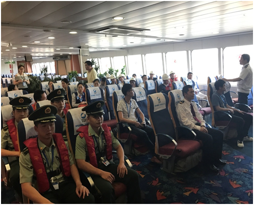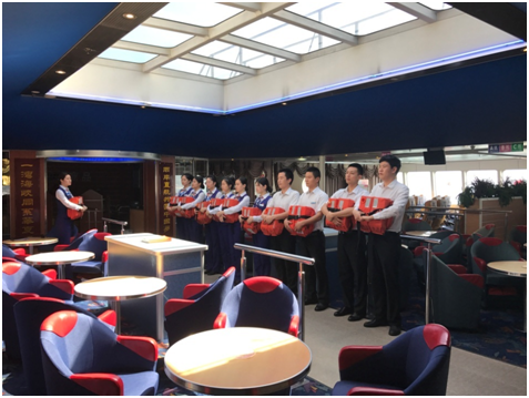 本次演习采用小区域集中演练,通过释放撤离滑道将人员撤离至配套救生筏,并出动两艘救助艇配合参与救援。演习过程中,船员严肃认真,迅速有序地完成人员安全撤离的任务,展现了船员对旅客的疏散和撤离的应变处置能力。