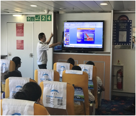 演习正式开始前,李锋船长对参加此次演习的所有人员进行一次有关演习的培训。主要介绍了演习的流程和内容,各项关键性设备的使用方法及使用步骤,以及参演人员的安全注意事项。