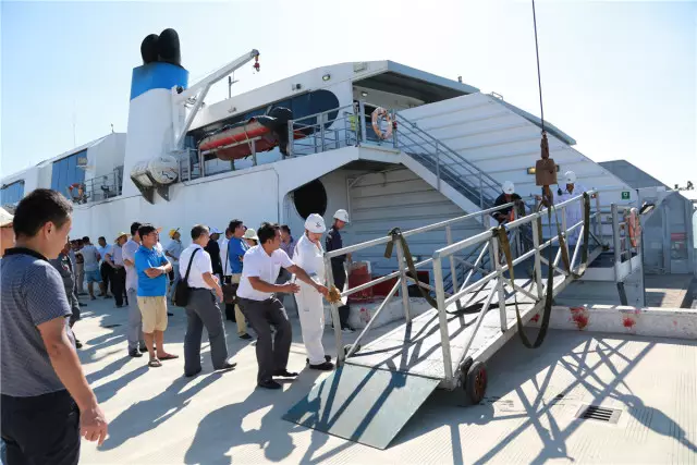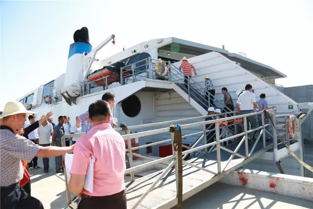 为检验旅客登离船流程和安全性,工作人员模拟登船。