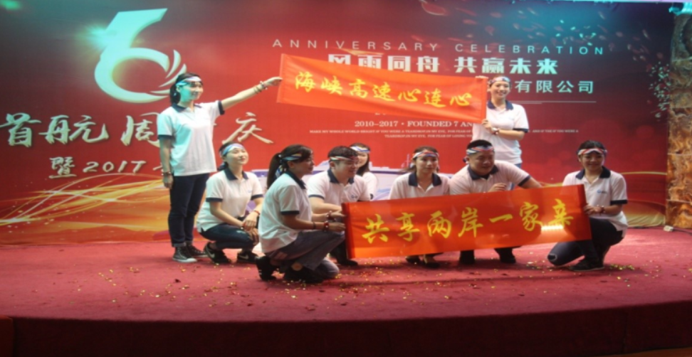 2017年11月28日17时,以“风雨同舟,共赢未来”为主题的海峡号首航6周年庆暨公司2017年会在平潭金海湾酒店隆重举行。福建国航远洋集团总裁王炎平先生、福建省海运集团董事长阮剑平先生、台湾华冈集团叶华陶先生等股东代表和特邀嘉宾出席了此次庆典,与海峡高速客滚全体员工欢聚一堂,共飨盛典。