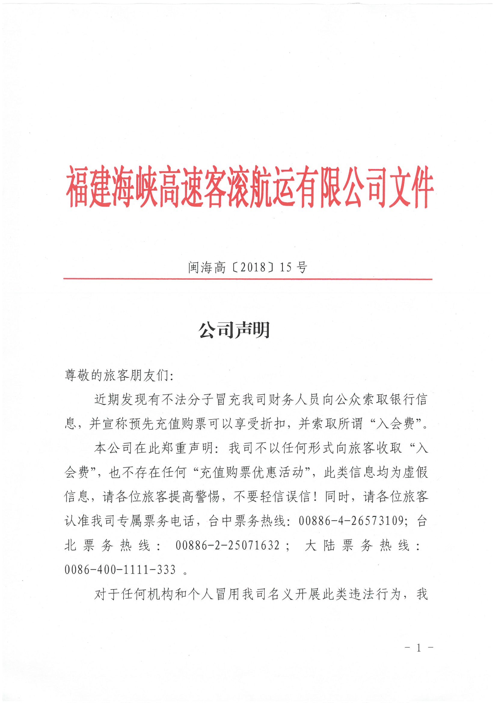 海峡高速关于购票优惠防诈骗的警示声明