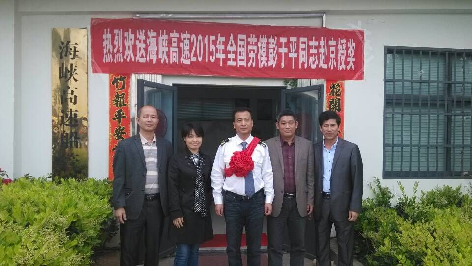 2015年4月27日上午9点,在我司船管部举行全国劳动模范彭于平同志赴京受奖欢送仪式。平潭县总工会副主席高建英、平潭县总工会经济技术部部长吴子龙 、海峡高速公司副总经理毛洪伟、海峡高速公司... [查看详情]